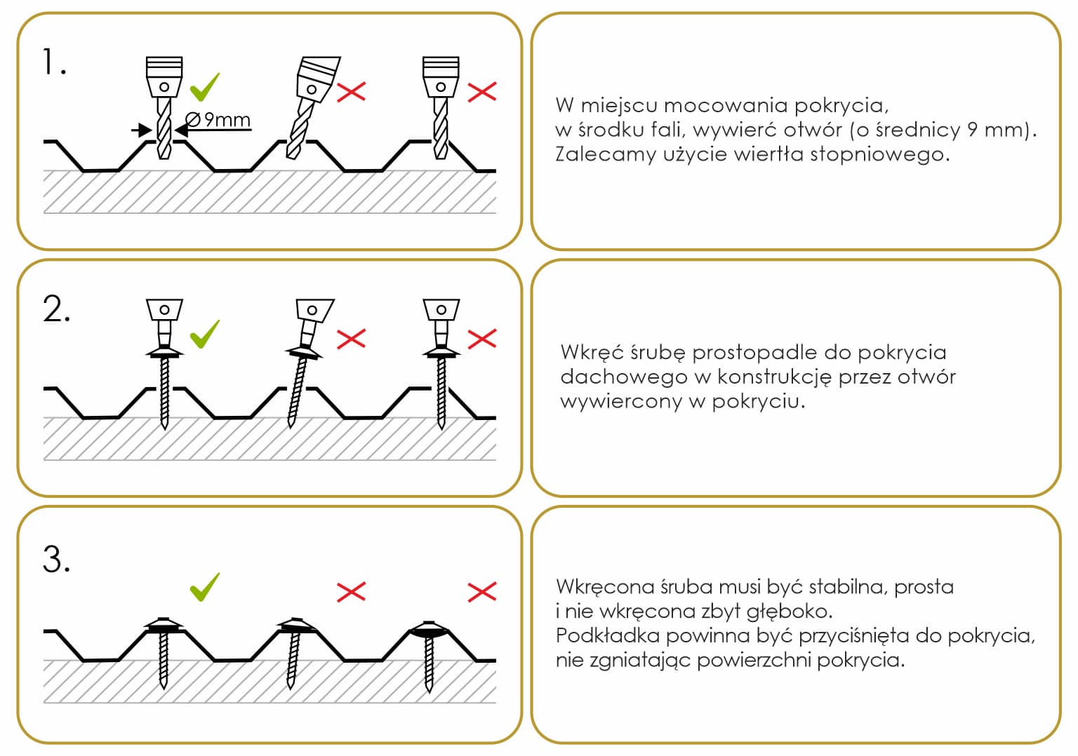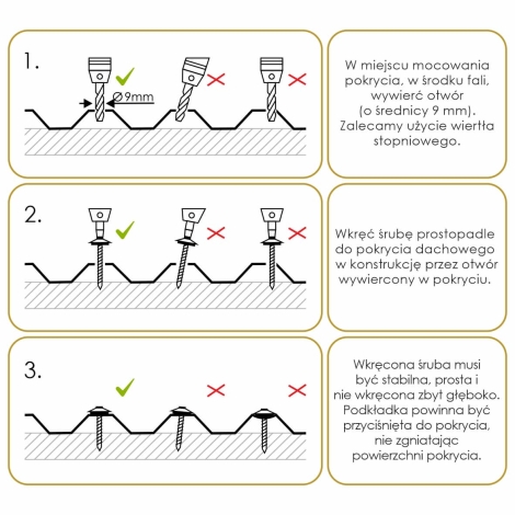 Przykład montażu pokrycia przy użyciu śrub MK PC DIAMONDS z podkładkami: