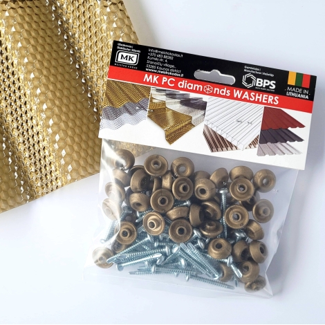 Śruby przeznaczone do montażu pokryć na konstrukcjach metalowych. Nadają się do stosowania z pokryciami z monolitowego poliwęglanu MK PC DIAMONDS (SINUS, Tile Effect), pokryciami z PVC i PET, poliwęglanem kanałowym, akrylem, falistymi płytami bitumicznymi, blachą i papą.